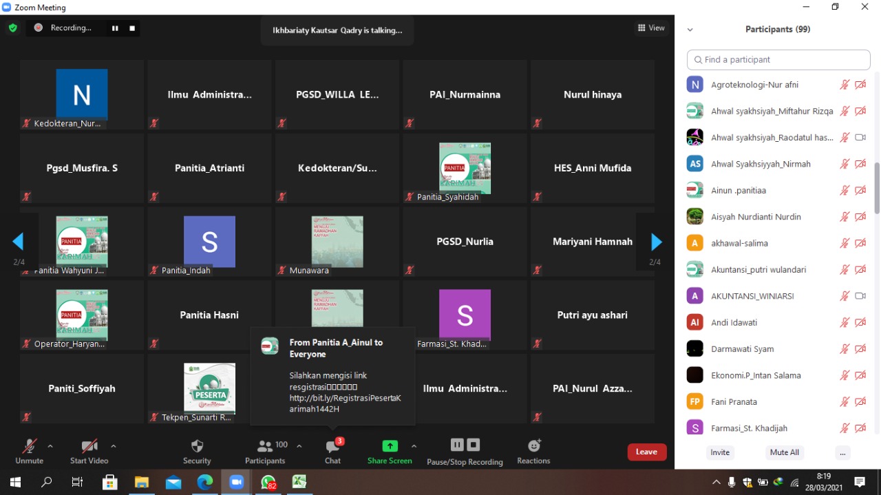 Angkat tema “Menapak Jalan Hijrah, Menuju Ramadhan Kaffah”, kegiatan berjalan secara online melalui Zoom Meeting.