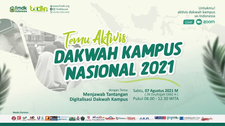 Kali ini mengusung tema “Menjawab Tantangan Digitalisasi Dakwah Kampus”, yang akan dilaksanakan pada hari Sabtu, 07 agustus 2021 pukul 08.00-12.10 WITA melalui Zoom Meeting.