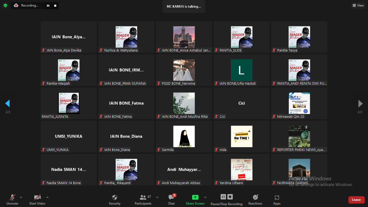 Kegiatan ini berlangsung pukul 08.30-12.00 WITA melalui Zoom Meeting yang dihadiri oleh mahasiswa muslimah kampus di Daerah Bone, Sabtu (18/09/21).