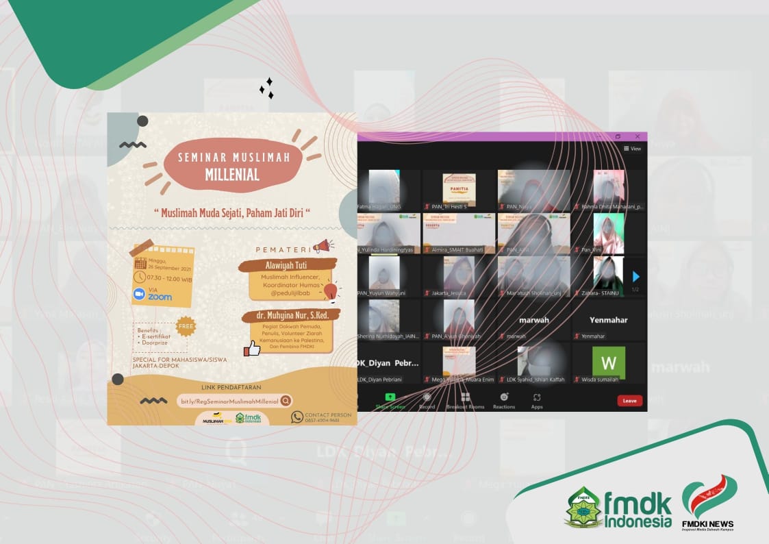 FMDKI.ORG, DKI JAKARTA–FMDKI (Forum Muslimah Dakwah Kampus Indonesia) DKI Jakarta sukses gelar Seminar Muslimah Millenial (SMM) dengan tema “Muslimah Muda Sejati, Paham Jati Diri”, Ahad (26/09/2021).