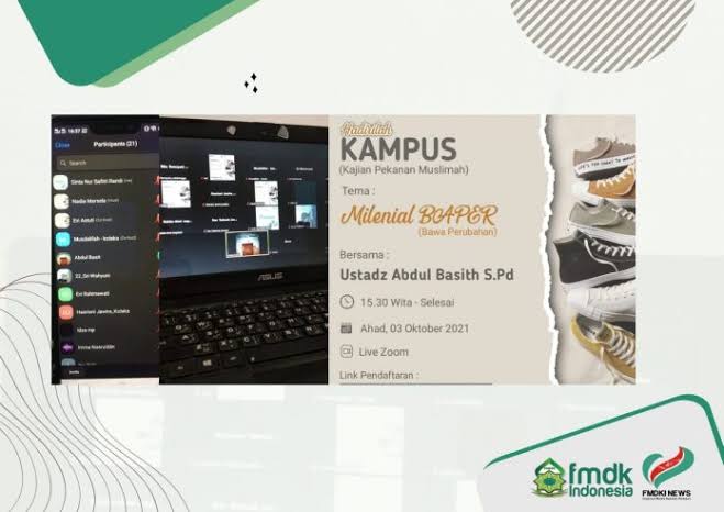 FMDKI.ORG, KOLAKA–Forum Muslimah Dakwah Kampus Indonesia (FMDKI) Daerah Kolaka gelar Kajian Pekanan Muslimah (KAMPUS) secara virtual melalui Zoom Meeting.