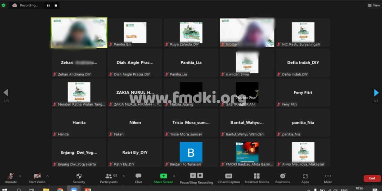 Kegiatan yang bertajuk “Ramadhan Kabarkan Surga yang Dirindu (The Best Time to Muhasabah)” ini dilaksanakan secara daring melalui Zoom Meeting.