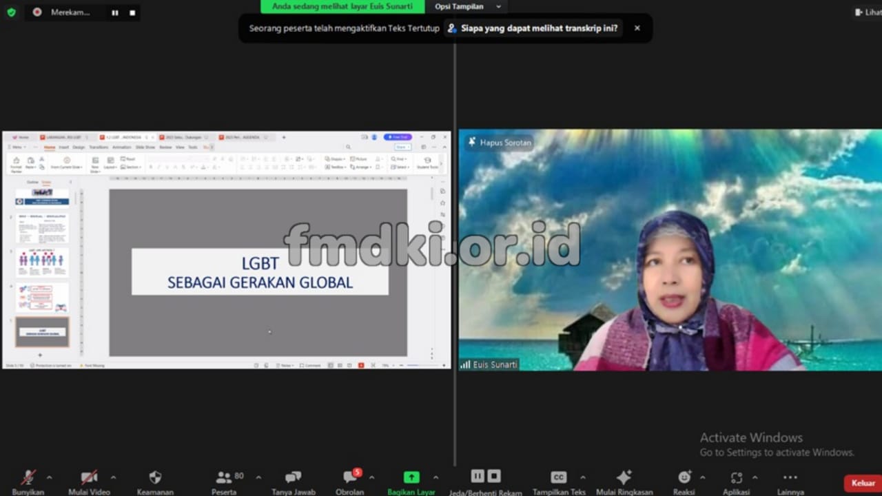Prof. Euis yang merupakan pemateri pertama menjelaskan tentang aktivis LGBT di dukung oleh lebih banyak organisasi resmi yang memiliki sumber pendanaan.