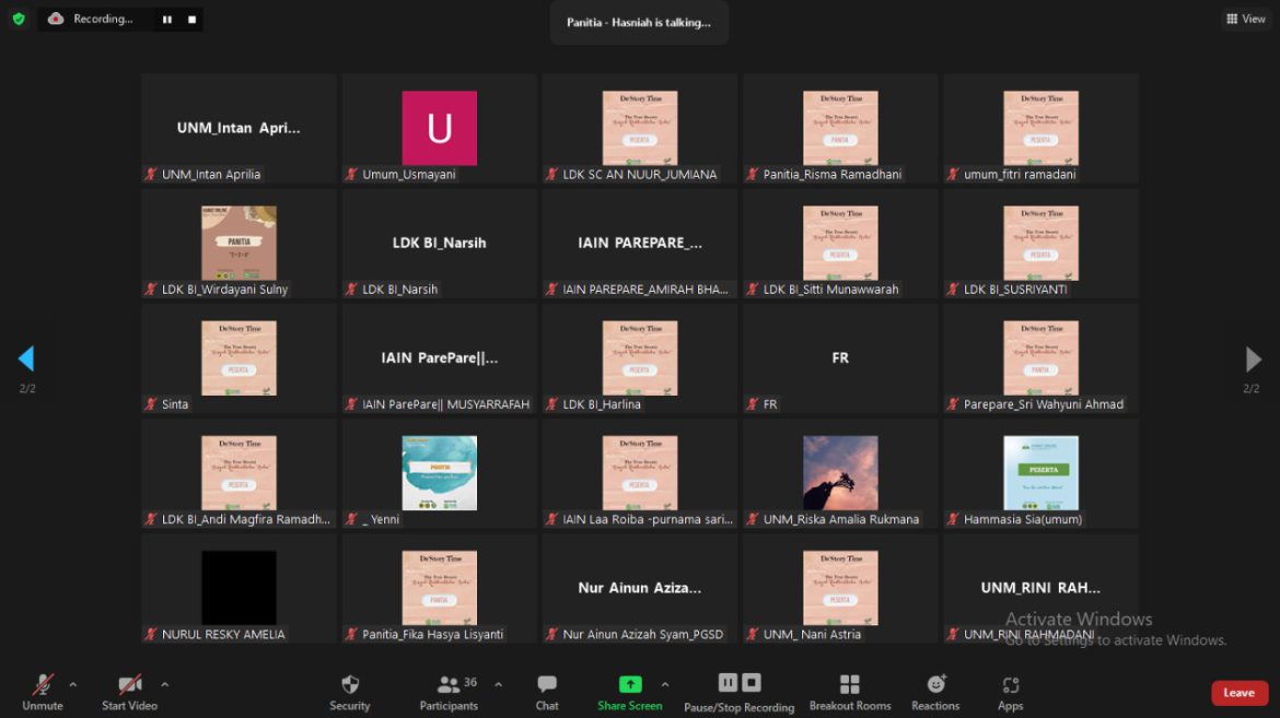 FMDKI.ORG, PAREPARE–Forum Muslimah Dakwah Kampus Indonesia (FMDKI) Daerah Parepare adakan program kerja terbarunya. Program kerja dari FMDKI Daerah Parepare tersebut bernama De’ Story Time dengan tema “The True Beauty Aisyah Rhadiallahu ‘anha” sukses di gelar. Kegiatan berlangsung, Jum’at (22/10/2021) pukul 11.15-12.50 WITA melalui Zoom Meeting dan dihadiri 67 partisipan. Cece …