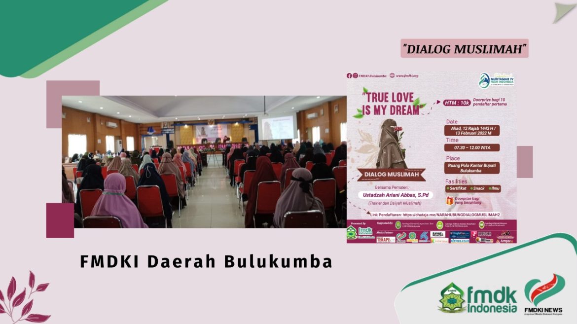 FMDKI.ORG, BULUKUMBA–Forum Muslimah Dakwah Kampus Indonesia (FMDKI) Daerah Bulukumba sukses gelar kegiatan Dialog Muslimah, Ahad (13/02/2022). Dialog Muslimah bertajuk “True Love is My Dream” ini merupakan kegiatan perdana offline di 2022 yang bertempat di Ruang Pola Kantor Bupati Bulukumba dengan menggandeng tiga Lembaga dakwah kampus untuk bekerja sama yaitu Lembaga …