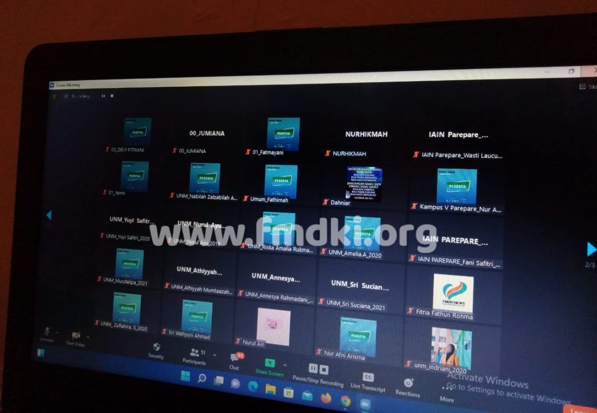 FMDKI.ORG, PAREPARE – Forum Muslimah Dakwah Kampus Indonesia (FMDKI) Daerah Parepare rangkul tiga Lembaga Dakwah Kampus (LDK) adakan kajian Jum’at (KAMAT) Akbar, Jumat (01/07/2022). Ketiga LDK tersebut adalah Lembaga Dakwah Kampus Babul Ilmi Kampus V UNM parepare, Study Club An-Nuur, dan Study Club Ulul Albab Parepare. Kegiatan ini berlangsung via …