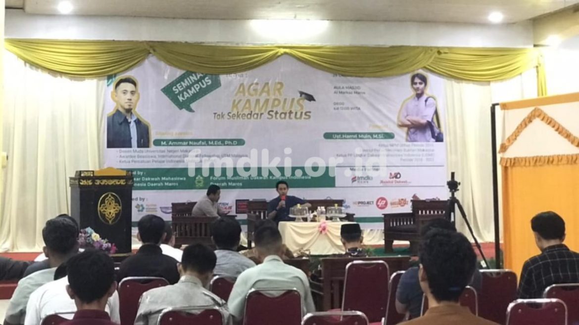FMDKI.OR.ID, MAROS – Lingkar Dakwah Mahasiswa Indonesia (LIDMI) Daerah Maros bersama Forum Muslimah Dakwah Kampus Indonesia (FMDKI) Daerah Maros gelar Seminar Kampus yang dirangkaikan dengan Sharing Session, Ahad (29/10/2023). Kegiatan yang mengangkat tema “Agar Kampus Tak Sekedar Status” berlangsung di Aula Masjid Al Markaz Maros yang dihadiri oleh 76 orang …